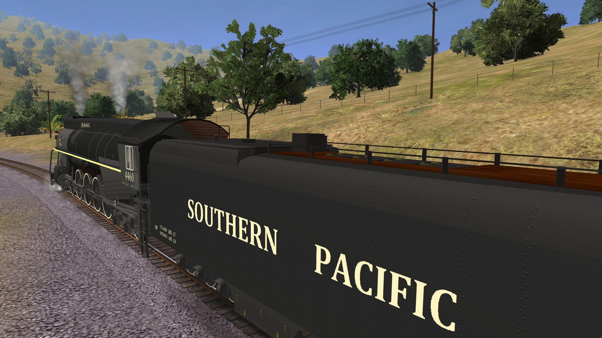 The pack contains any 3 locos, with matching tenders, in both the Southern Pacific logo (pre 1946) and Southern Pacific Lines (post 1946). Livery options are the the plain black in later years. Please specify when ordering. Animated driver and engineer figures, special texturing techniques, including 12 months warranty, all updates and fixes for $16 US. Individual locos are available at $9 each. Please add $1 each loco/tender for full weathering.